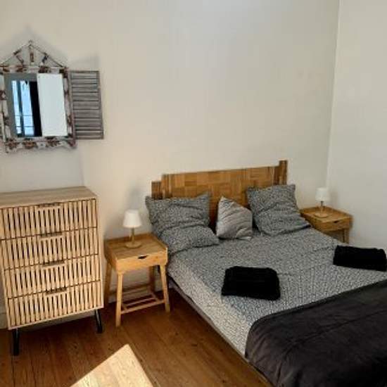 Hello, I am offering a 2-room flat with a surface area of 42 m², comprising an entrance hall opening onto a large, bright living room with fireplace, a fitted, equipped kitchen, a bedroom overlooking the courtyard and a shower room with separate toilet. The living room includes a sofa bed for occasional sleeping, a dining area, a coffee table and storage space. The fitted kitchen is equipped with a fridge, two induction hobs, a microwave, a filter coffee maker, a kettle, a toaster, and so on. Cooking utensils are also provided. The bedroom h...