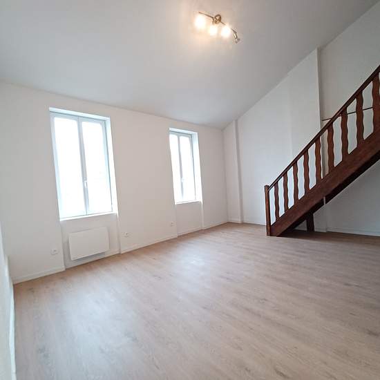 Décrouvrez cet appartement en duplex proche centre ville au 2ème étage comprenant une pièce à vivre avec un coin- cusine équipée, 1 WC. A l'étage : une salle d'eau, et une chambre. Disponible