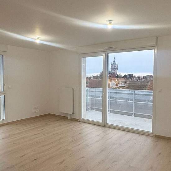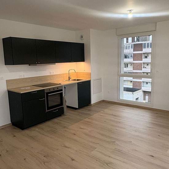 Apartment For Rent T2. (AF) In Loos, in the new "L'ALCOVE" residence, we offer this T2 of 51.72 m². It comprises an entrance with a large closet, a shower room with WC, a bedroom of 12.85 m² and a living room with an open fitted and equipped kitchen of 23.33 m² providing access to a 6.61 m² balcony. A parking space completes the property. Collective heating and hot water.
