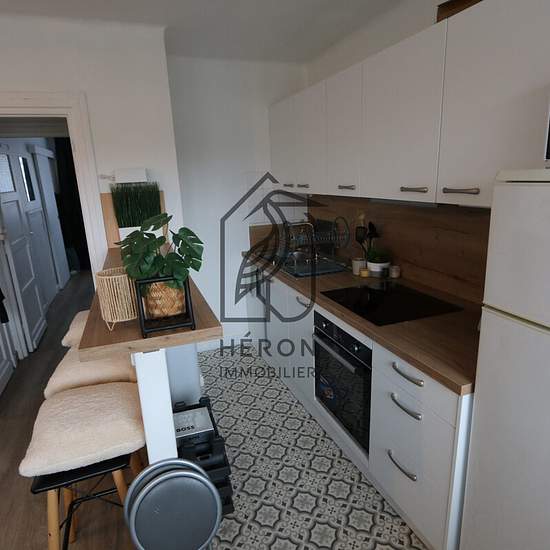 HÉRON IMMOBILIER presents for rent this furnished and bright two-room apartment with balcony. * Location: - Located on Rue Mirabeau in LOOS * Features: - Entrance hall; - Living/dining room with open, fitted kitchen (worktop, upper and lower storage units, ceramic hob and stainless steel sink); - One bathroom (vanity unit, mixer tap, bathtub with hand shower, shower screen, heated towel rail, WC and mechanical ventilation (VMC)); - One bedroom; - Heating and hot water produced by an individual gas boiler. * Rent €690 all charges included: €6...