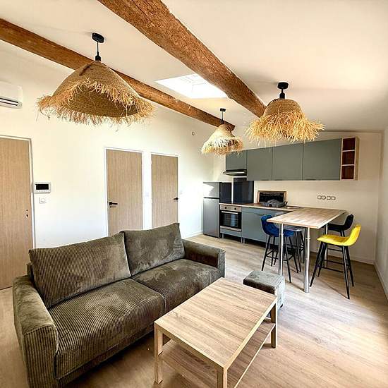 LOUPIAN CENTER Located on the first floor of an elegant small building, this T2 one-bedroom apartment of 37 m² has been completely renovated and furnished with quality materials. It offers a refined, bright and quiet living environment. It comprises: A beautiful living area with lounge and fitted and fully equipped kitchen, opening onto a small private balcony. An elegant bedroom with a French door leading to the small balcony. A contemporary shower room with a walk-in (Italian-style) shower. Separate toilet. Key features: - High-quality fit...