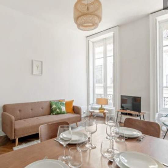 Situé au coeur de la Presqu'île, cet appartement est idéal pour accueillir 2 personnes. Proche de commerces et des transports, cet appartement est parfait pour habiter à Lyon. Appartement refait à neuf de 45 m² situé au 2e étage sans ascenseur. Ce logement bourgeois avec moulures et parquet est composé de : - un salon charmant, - une cuisine entièrement équipée (bouilloire, machine à café, grille-pain, four, micro-ondes, plaques de cuisson, lave-vaisselle, frigo), - une chambre avec lit double, - une salle de bain avec baignoire, - aspirateu...