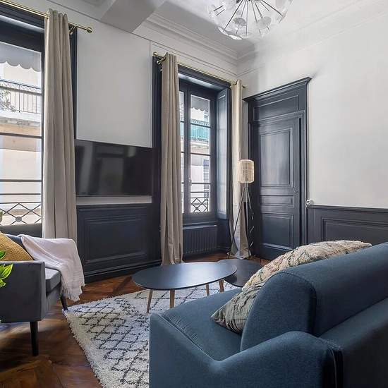 Bienvenue dans l’appartement Préfecture, un petit havre de paix de 50m2 entièrement rénové idéalement situé en plein coeur de Lyon. L’appartement se situe au 5ème étage sans ascenseur ! Mais pour les plus valeureux, à la clé de cette séance de sport improvisée vous attends une suite avec une chambre séparée pour votre intimité, une salle de bains moderne, une cuisine entièrement équipée, offrant un espace idéal. Pour rendre votre séjour encore plus agréable, nous mettons à votre disposition des équipements de qualité : lave-vaisselle, machin...