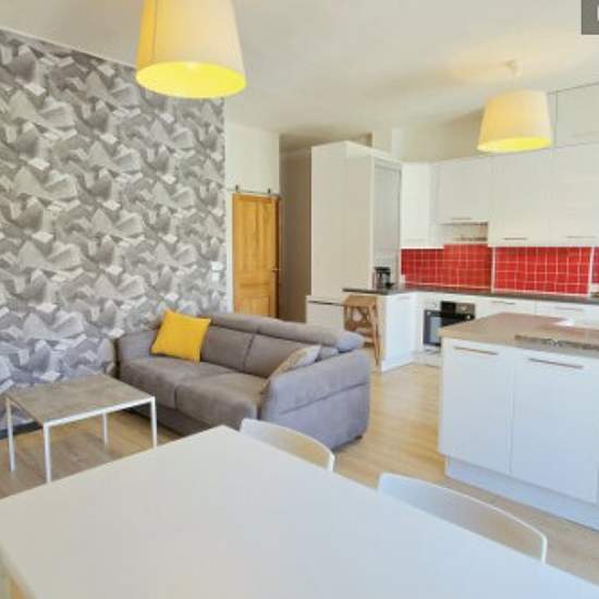 Très joli et lumineux appartement de 42m² avec 1 chambre, garage et climatisation mobile Logement au calme et sans vis-à-vis direct, situé dans une petite rue à sens unique majoritairement utilisée par les résidents. Double vitrage et stores électroniques dans tout l'appartement. Vaste pièce de vie avec une grande cuisine très bien aménagée. Salon avec TV et son meuble, table basse, canapé convertible de très bonne qualité Cuisine avec évier, four, micro-ondes, bouilloire, grille-pain, réfrigérateur/congélateur Lave-vaisselle, nombreux range...