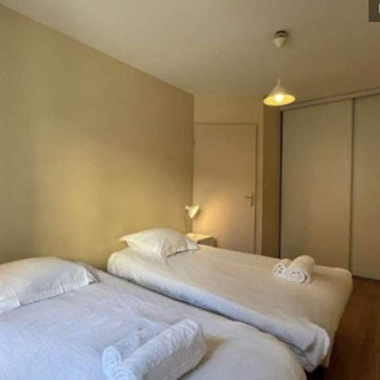 Grand T2 de 53 m² avec une chambre séparée, une cuisine indépendante et un salon fermé avec canapé lit. Il peut accueillir jusqu'à 4 personnes. 1er étage avec ascenseur Décoré avec goût, cet appartement meublé est composé d'une cuisine équipée fermée, d'un salon (avec canapé lit et bureau) ouvert sur balcon, d'une chambre (grand lit king size pouvant se séparer en deux lits simples), d'une salle de bain et d'un WC séparé. Dans un immeuble contemporain, ce meublé est lumineux et tout confort !