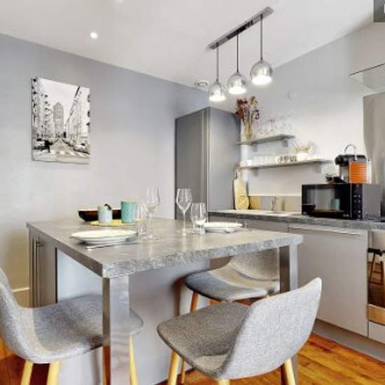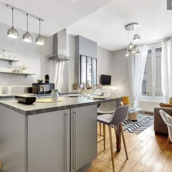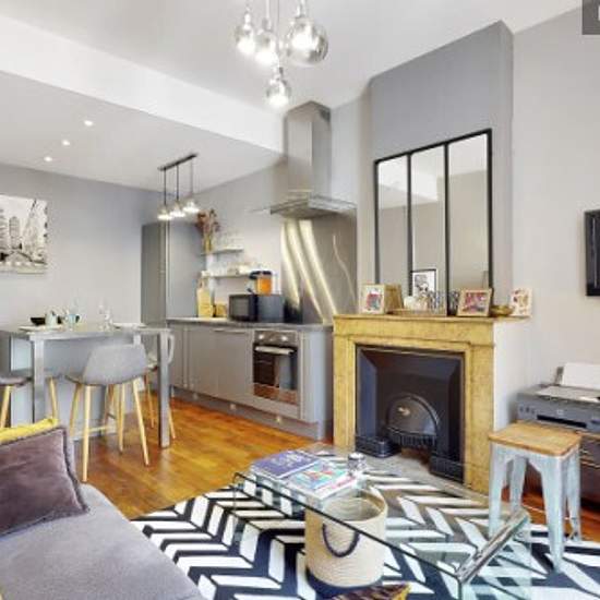 Loyer toutes charges comprises : eau, électricité, gaz, Internet, Wifi, chauffage, ménage mensuel, linge de maison ... L'agence Urban Séjour vous propose un joli appartement de 42 m² avec 1 chambre Bien aménagé, confortable, tout équipé Pour 1 à 3 personnes : Canapé-lit dans le salon (160*200) Entrée : porte manteaux Salon : canapé-lit (160*200), table basse, 2 tabourets, fenêtre avec stores, vue sur rue, TV, rangements Cuisine américaine : évier simple bac, plaque halogène 4 feux, lave-vaisselle, hotte électrique, réfrigérateur / congélateu...