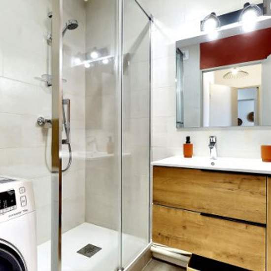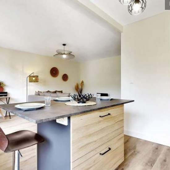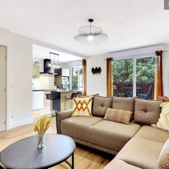 Loyer toutes charges et taxes comprises : eau, électricité, gaz, Internet, Wifi, ménage mensuel ... Nous vous proposons un joli logement 1 chambre de 50 m² Avec un balcon et un garage box fermé Refait à neuf en 2022 Entrée : 2 placards muraux Salon : canapé 5 places (aussi couchage : 140*200), table basse, TV 64cm*42cm, bureau et sa chaise, 2 chaises pliantes, 2 fenêtres avec volets, rideaux voilage, vue sur jardin Accès au balcon Balcon 5 m² : table, 2 chaises, séchoir à linge rétractable Cuisine américaine intégrée : évier simple bac, lave...
