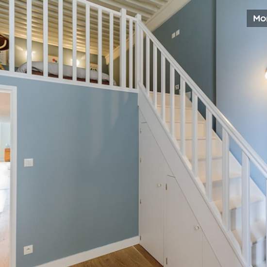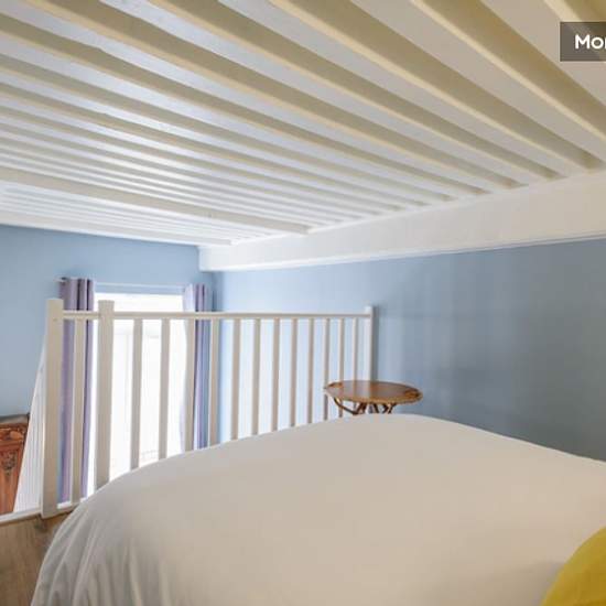 Croix Rousse, Gros Caillou, furnished 3-bedroom, 2-bathroom duplex flat on the 2nd floor of a building with lift. Unobstructed view over Place Bellevue to the south. Fully furnished, it is a canut that has been refurbished and the beds in the bedrooms are on the mezzanine (height 1.80 m), as in a duplex. It comprises a large, bright living room with high ceilings, a semi-open, fully-equipped kitchen, a dining area and a lounge. A bathroom, a shower room and a laundry area with washing machine and tumble dryer complete this property. Separate...