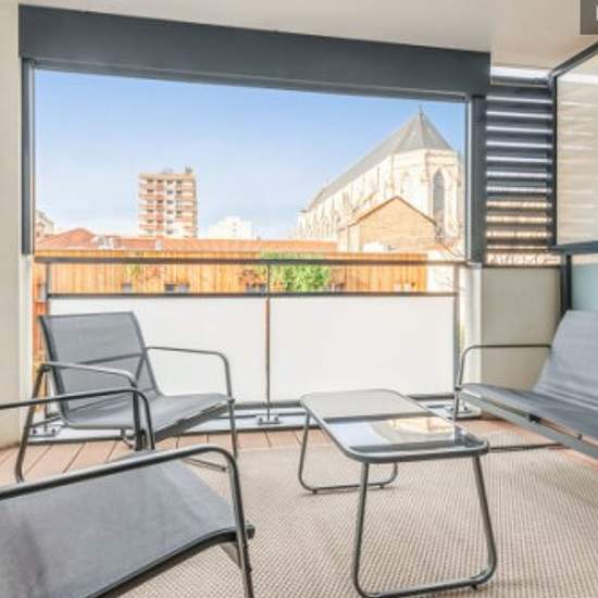 Découvrez un espace T2 entièrement meublé et équipé à neuf, proposant une atmosphère moderne et apaisante. Le salon accueillant donne sur une terrasse, parfaite pour se détendre en plein air. Situé au calme au premier étage avec ascenseur, cet appartement de 44m², se compose de : - une terrasse de 10m² bénéficiant d'une vue dégagée sur le jardin intérieur, - un espace de vie avec un salon lumineux et un coin salle à manger, - une cuisine ouverte parfaitement équipée (machine à café, bouilloire, grille-pain, four, micro-ondes, plaques de cuis...