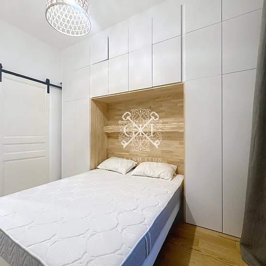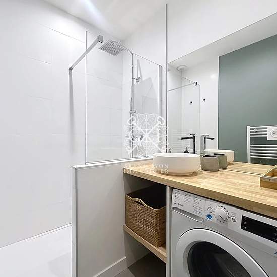 T2 MEUBLE - LYON 6 - BROTTEAUX 131 rue Bugeaud - 69006 LYON Merci de nous appeler afin de convenir d'un RDV. Venez découvrir, sein de cette résidence, ce T2 meublé entièrement rénové de 52,13 m2. Il est composé d'une entrée avec meuble de rangement sur mesure, un double salon- séjour avec cuisine ouverte entièrement équipée et aménagée, une chambre côté cour avec dressing sur-mesure, une salle d'eau avec machine à laver et WC indépendant. Nombreux rangements. Vous serez séduit par le charme de l'ancien : cheminée, parquet chevron, belles hau...