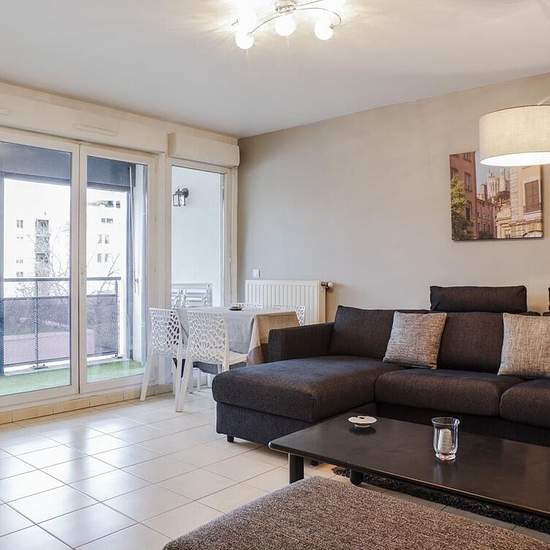 T2 meublé proche gare de Vaise - LYON 9ème. 5 rue des Mariniers 69009 Lyon. A deux pas de la gare de Vaise dans une copropriété sécurisée édifiée sur sous-sol en 2008, au 2ème étage avec ascenseur, un appartement T2 meublé de 47.78 m2 comprenant une entrée immédiate sur le séjour ouvert sur une loggia exposée Nord Est, une cuisine indépendante meublée et équipée avec un mange debout (lave linge, four, lave vaisselle, plaque de cuisson induction 4 feux, hotte, frigo combiné), une chambre avec dressing, une salle de bain et toilettes séparés....