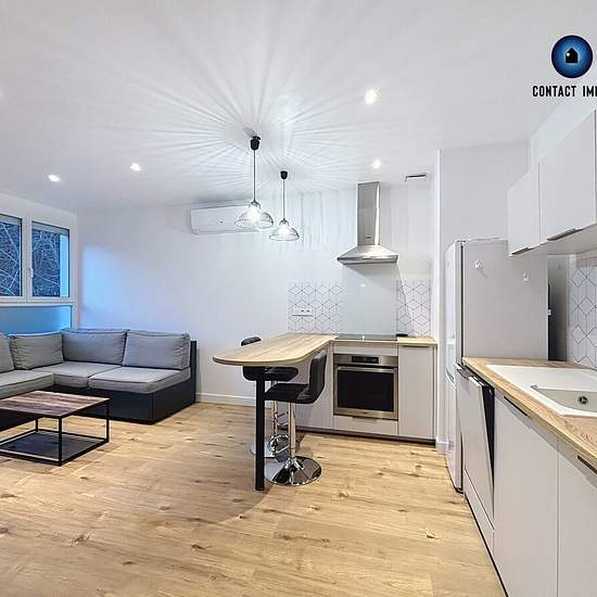 Sur les hauteurs de Malemort, très bel appartement de type F2 meublé avec goût comprenant 1 cuisine aménagée et équipée (plaque indiction, four, hotte aspirante, lave-vaisselle, frigo) ouverte sur le salon, 1 chambre, 1 salle d'eau-WC avec machine à laver, 1 cave et 1 place de parking. Type de chauffage: individuel électrique (climatisation réversible); double vitrage PVC; volet roulant PVC électrique. Bilan énergétique C. Loyer 560€ CC dont 20€ de charges. Frais d'agence à la charge du locataire 280€. Libre de suite. A visiter d'urgence, ne...
