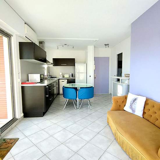 APPARTEMENT SOUS GARANTIE LOYERS IMPAYES (condition requise et obligatoire revenus équivalents ou supérieurs à 3 fois le montant du loyer). Disponible à partir du 18 Novembre. Nous vous proposons à la location cet appartement de 33 m² environ composé d'une entrée, un salon salle à manger avec cuisine ouverte équipée, une chambre avec rangement, une salle d'eau avec WC, une terrasse d'angle (et un cellier). Un parking extérieur privé est compris avec l'appartement. Résidence avec piscine , gardien. proche de toute commodité à pied : supermarc...