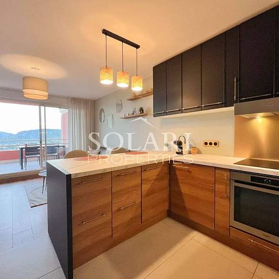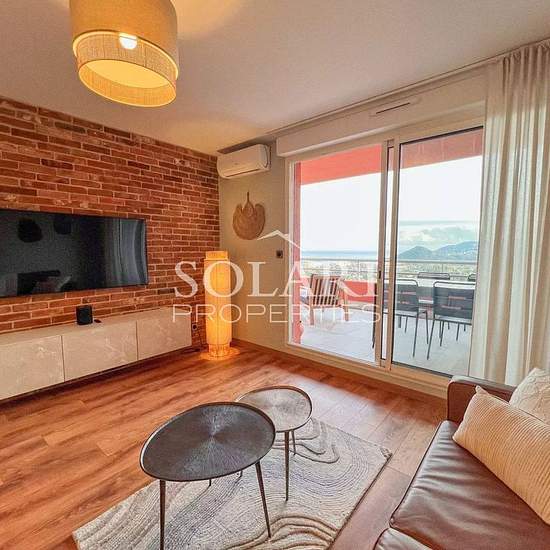 Sur les hauteurs de Mandelieu-la-Napoule, cet appartement 2 pièces entièrement rénové offre un cadre idyllique pour profiter de la Côte d’Azur. Situé au dernier étage d’une résidence sécurisée avec piscine et gardien, il combine confort, tranquillité et une vue à couper le souffle sur la baie de Cannes, les îles de Lérins et le massif de l’Estérel. L’appartement comprend une entrée avec placard, un séjour lumineux ouvrant sur une cuisine américaine moderne, idéale pour préparer vos repas tout en profitant de la vue. La chambre dispose d'un p...
