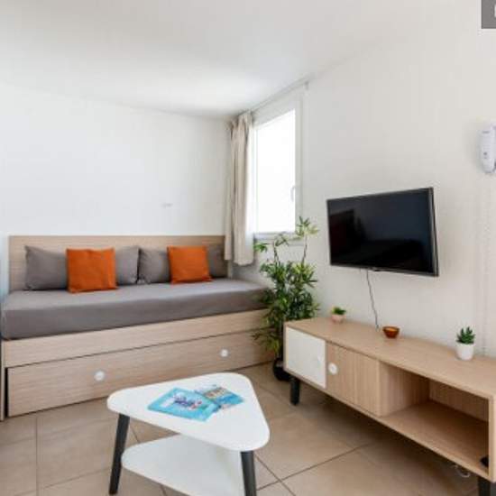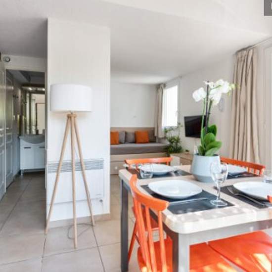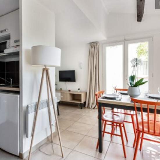 Appartement de 35m² pouvant accueillir jusqu'à 4 personnes et équipé d'un canapé gigogne (90x200) au rdc et 2 lits simples (90x200) ou 1 grand lit (160x200) à l'étage, coin cuisine et salle de bain (douche PMR sur demande et selon disponibilité), jardin privatif. Parking et animaux en supplément. Lit bébé et fer à repasser sont disponibles suivant demande. Un terrain multisports est présent dans la résidence. Dans le cadre d'une location saisonnière, en plus du loyer mensuel, une taxe de séjour d'un montant qui varie par nuit et par personne...