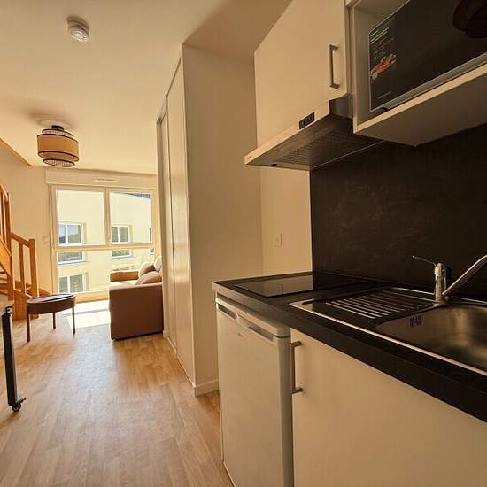 À Louer !Bel Appartement T2 Duplex Meublé . Nous vous proposons à la location ce charmant appartement T2 Duplex meublé, situé au 3ème et 4ème étage . Il se compose d'une entrée, d'une pièce à vivre, d'une cuisine équipée, d'une chambre avec placard et d'une salle d'eau aménagée avec WC. Les +: laveries, cuisine partagée , salle de sport , espace co-working , terrasse partagée , à proximité des campus universitaires rouennais. N'hésitez pas à nous contacter pour organiser une visite !