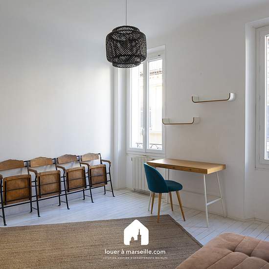 Charming furnished 2-room apartment located in the heart of the sought-after Le Panier district, in a quiet, well-maintained building. This accommodation offers a pleasant, bright, and modern living environment. The property consists of a spacious, light-filled living area with a warm and welcoming atmosphere, open to a fully fitted and equipped kitchen; a bedroom with a double bed and wardrobe; a second bedroom with a bunk bed and a desk; a functional, contemporary bathroom with quality finishes; and a separate toilet. Located within immedi...