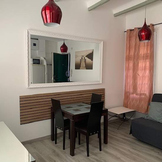 Appartement de 32m² comprenant une cuisine entièrement équipée avec lave-linge, plaques électriques, four et réfrigérateur. La pièce principale est aménagée avec un canapé-lit, une table avec chaises et une télévision. La chambre dispose d'un lit double et d'une armoire. Une salle d'eau complète ce bien. Situé au troisième étage d'un immeuble de 4 niveaux, sans ascenseur. Disponible a partir du 26 février