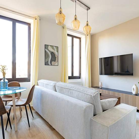 Dakey's Immobilier vous propose A Louer Rostand / Castellane 13006 Marseille un magnifique T2 – 33 m2 entièrement refait à neuf et meublé au goût du jour, avec des prestations de standing – coup de cœur assuré. Situé dans une rue calme au premier étage, ce bien est équipé de : Séjour : - Canapé convertible - Tables basses gigognes - Console TV - Tapis, poils moyens : couleur blanc cassé - Table à manger - 2 places - Smart TV UHD - Chauffage à inertie sèche Chambre: - Lit - Couette 240x200 - Deux oreillers - Chauffage Cuisine: - Plaque de cui...