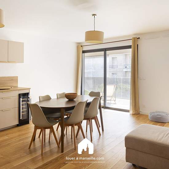 Discover this beautiful fully furnished T3 apartment of 75 m², offering high-quality finishes and well-laid-out spaces. It comprises an entrance hall with storage, a modern fully equipped kitchen open to a bright living room, which gives access to a superb 20 m² terrace. The sleeping area includes two bedrooms with storage, including a master suite with a shower room and WC. A second bathroom with a double sink, as well as a separate WC with a laundry area, complete the property. A private enclosed garage completes the property.