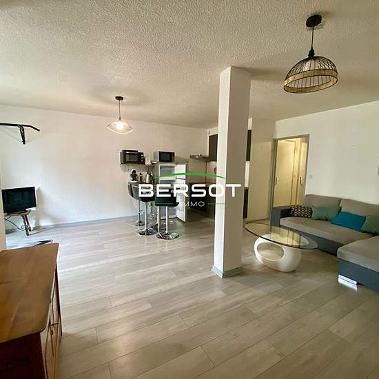 Bersot immobilier Métabief vous propose un très bel appartement meublé situé au coeur de Métabief à 15 minutes de la frontière suisse. Ce logement au 1er étage est composé d'une entrée avec placard, d'une cuisine aménagée et équipée ( plaques de cuisson, hotte, four, micro-onde, frigo ) ouverte sur une belle pièce de vie avec placard, d'une chambre, d'une salle de bain rénovée à neuf ( machine à laver) et un toilette séparé. Vous profiterez avec ce logement d'un balcon, d'un garage avec espace cave et d'un casier à ski. Vous aurez accès au t...