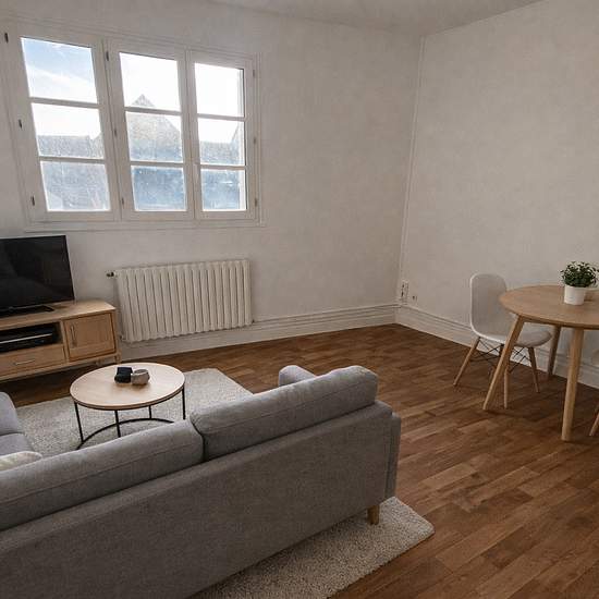 Dans le centre ville de Meung-sur-Loire, appartement F2 de 38m2 habitables, comprenant : Un dégagement, une cuisine, un séjour, une chambre, une salle d'eau avec wc. Loyer 400EUR CC dont 50EUR de charges (Eau froide + OM + EDF et entretien des communs + entretien de la chaudière). Dépôt de garantie 350EUR - Hon Etabl Acte de loc : 324EUR (dont 114EUR EDL) Libre de suite. Visites possibles après constitution d'un dossier.
