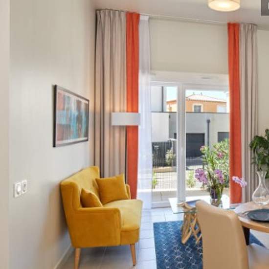 Installez-vous dans une résidence moderne et accueillante à quelques kilomètres de Sète. Confortablement installé dans votre appartement, vous vous sentirez bien chez vous. Parfaitement autonome, tout en étant encadré si vous le désirez. Vous apprécierez les nombreuses prestations de service de votre résidence services. Confortable et soigneusement agencé, ce logement répond parfaitement à vos besoins : cuisine aménagée ouverte sur le séjour, grande salle d'eau adaptée, connexion Wifi, décoration au goût du jour… Tout a été conçu pour votre ...