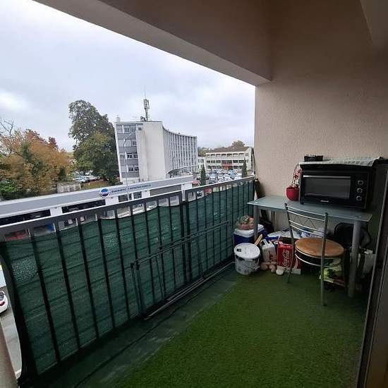 Appartement T3 en duplex et espace mezzanine proche du centre ville à pied au 3 -ème étage avec ascenseur . Il se compose d'une entrée, un WC indépendant, une salle de bains, une cuisine aménagée, une chambre et un espace salon. A l'étage un espace salon mezzanine et une deuxième chambre. A l'extérieur un balcon Au sous sol de la résidence une cave. Libre fin novembre