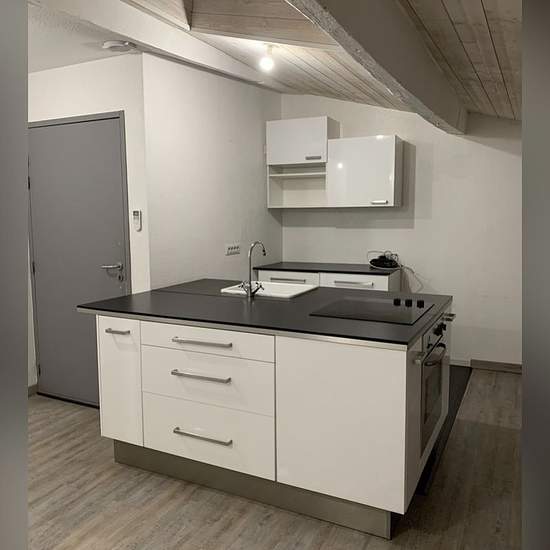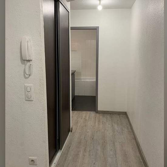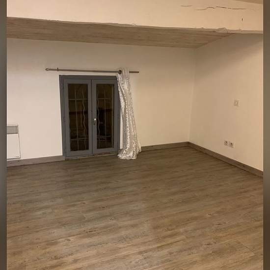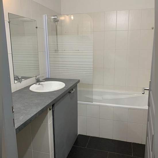 For rent: one-bedroom (F2) apartment — €550/month. 50 m². Large living/dining room, kitchen (oven and cooktop provided), bright bathroom with bathtub and wall-mounted toilet, 1 bedroom.