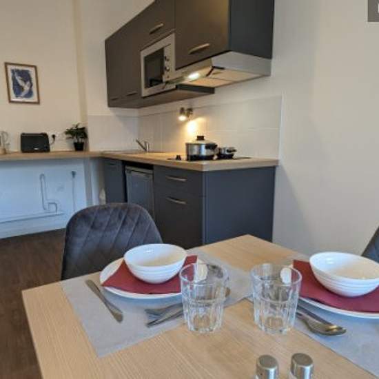 Au sein de la résidence, confortable appartement composé d'une chambre, un salon/séjour, une cuisine américaine, une salle de bain équipée, le tout décoré avec goût. L'appartement est situé dans la charmante ville de Montivilliers, proche des axes routiers permettant de rejoindre le centre du Havre en une quinzaine de minutes. Bienvenue à Montivilliers, une charmante commune de la banlieue havraise, où vous pourrez séjourner dans notre résidence située au 55 rue Jean Jaurès. Spacieux et confortable c'est l'endroit idéal, vous pourrez profite...