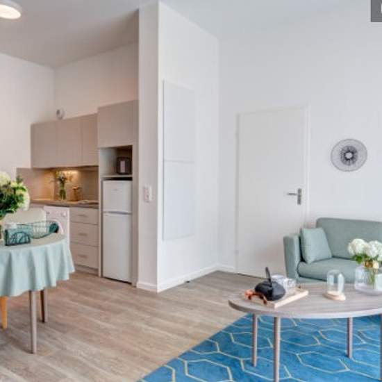 Un cadre de vie confortable et chaleureux La résidence propose à la location cet appartement meublé. Parfaitement conçu pour répondre aux besoins, il offre confort, sécurité et bien-être. Il est doté d'une cuisine équipée ouverte sur le séjour, d'une grande salle d'eau ergonomique avec douche à l'italienne, de volets électriques, d'une connexion Wifi*, et de nombreux rangements. Les animaux de compagnie y ont bien évidemment leur place ! La résidence se compose de 2 bâtiments de seulement 3 étages. Au rez-de-chaussée, un large espace vitré a...