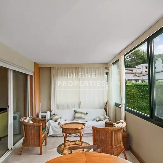 Notre agence vous propose à la location de Septembre à Juin cet appartement meublé dans le domaine du Royal Golf de Mougins. Cet appartement avec vue se situe dans un domaine avec piscine et fait face au parcours de golf. L'appartement dispose d'un séjour avec une grande loggia, d'une cuisine entièrement équipée ainsi que d'une chambre avec placard, d'une salle de bains et d'un WC. Une place de parking est incluse. Possibilité de garage fermé. Loyer mensuel: 1200 € cc Depot de garantie: 2000 € Frais d'agence (avec etat des lieux) : 650 € In ...