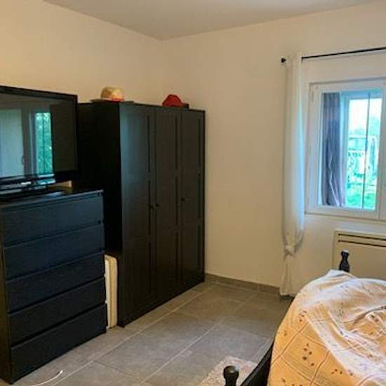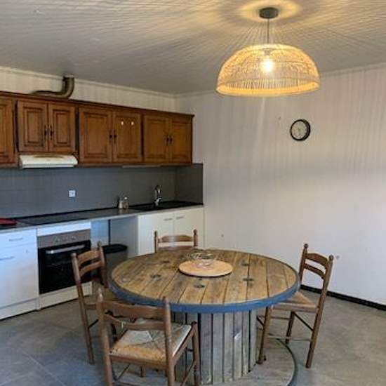 Appartement à louer lieu dit sous les mattes à moussac, entre nîmes et alès. Superficie de 64 m² avec parking extérieur et terrasse couverte. Bon état, comprenant un pièces à vivre avec cuisine ouverte aménagée et semi-équipée (plaque de cuisson, hotte et four), une chambre, un bureau, une salle d'eau et wc séparé. Climatisation dans chambre et séjour. Prix demandé : 590 eur c. C libre immédiatement.