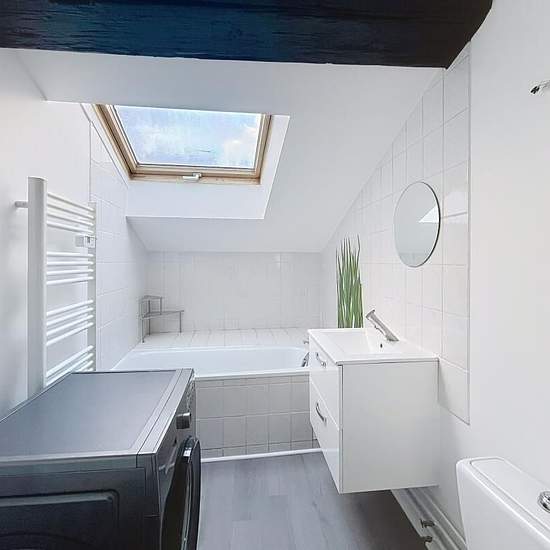 Idéalement situé en plein cœur de Nancy, à seulement deux pas de la place Stanislas, cet appartement entièrement rénové offre un cadre de vie rare et particulièrement confortable. Niché au dernier étage d'un immeuble calme, il bénéficie d'une belle luminosité et d'un charme contemporain. Les photos présentent l'appartement non meublé, mais celui-ci sera entièrement aménagé pour la location, avec un mobilier neuf et des convecteurs électriques dernière génération, garantissant confort et performance énergétique. Vous profiterez d'un intérieur...