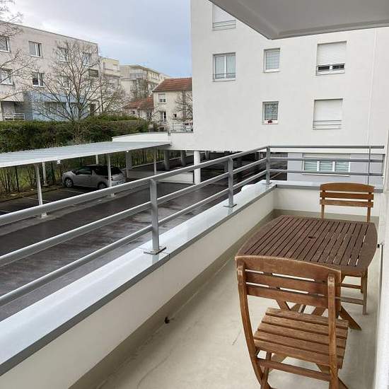 Appartement de 51 m² à louer sur Nancy Agréable et lumineux T2 plein sud meublé dans une résidence de standing et sécurisée. Ligne bus T2 et tram à proximité, centre-ville à 15 / 20 mins à pied. Appartement composé : - 1 salon avec cuisine ouverte donnant sur balcon terrasse. Tout équipé avec table et chaises style scandinave. Canapé lit futon et tables basses. TV écran plat, connexion fibre. - 1 cuisine équipée avec réfrigérateur-congélateur, four multifonctions, plaque de cuisson, lave -vaisselle neuf et vaisselle diverse. - 1 chambre avec...