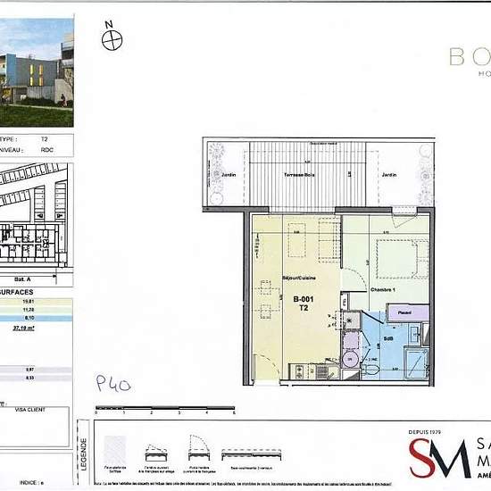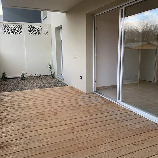 Libre le 02/01/2026 - Narbonne - Rue d'Atlas - Résidence Botanik - Un appartement Type 2 n°B001 en rez de chaussée d'une surface habitable de 37.19 m² - Composé d'un espace séjour/cuisine semi équipée (plaque, four, hotte) d'une surface de 19.81 m - Chambre de 11.28 m² avec placard compris - Salle de bains de 6.10 m² - Terrasse en bois de 9.87 m² + Jardin de 9.33 m² - Parking Privatif n° 40 - Orientation : Nord-Est. Climatisation dans le logement ! DPE/A41 (montant estimé des dépenses annuelles énergétique pour une consommation standard est ...