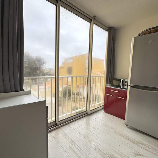 Fütterer Property vous présente à Narbonne-Plage : Appartement 2 pièces meublé au 2ème étage d'une résidence sans ascenseur en location à l'année. Situé dans une résidence à proximité immédiate de la plage ce logement, se compose de la manière suivante :une entrée avec placard, une salle d'eau rénovée, une pièce à vivre avec cuisine équipée (plaque de cuisson, lave linge, frigo), une chambre avec un lit 140x200 et enfin une loggia aménagée. L'appartement dispose d'un emplacement de parking privatif dans la résidence. Loyer : 500€/mois + 30€ ...