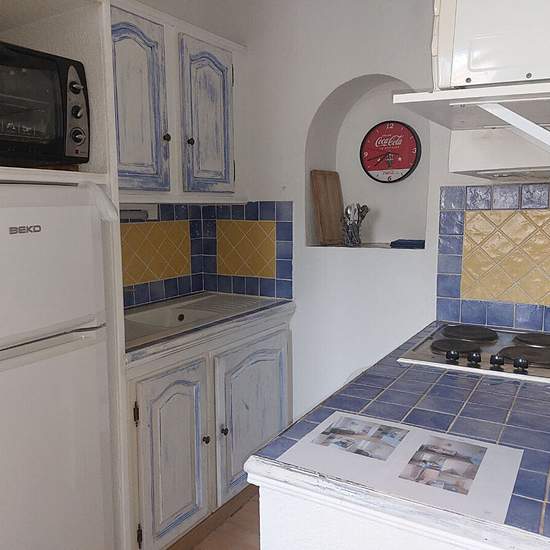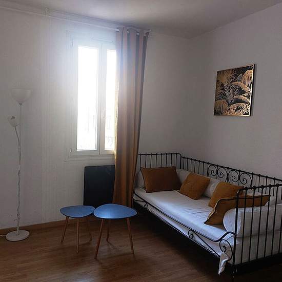 Narbonne Révolution: T2 on the 1st floor of a small apartment building. Entrance into a kitchen and dining area, shower room, WC, large bedroom with a sitting area. Rented furnished. Very bright. The charges include cleaning of the common areas and household waste collection.
