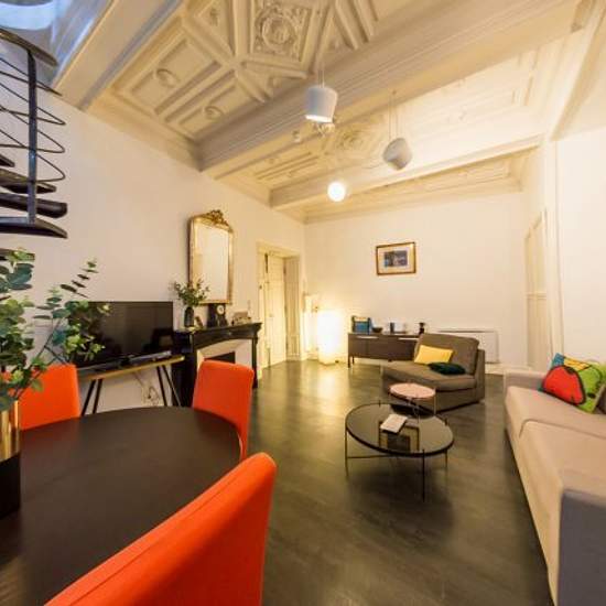 Situated in a family house, this 70 m² duplex flat (4-star tourist accommodation), with one bedroom, is really comfortable for 4/5 people. Entirely renovated, it dates from the 18th century. The ground floor space includes a large living room with a convertible sofa 140, a kitchen and a laundry room. The flat has a private green patio (outdoor space) and includes a table, cushion and shade sail. It is accessible until 10:30pm. → Fully equipped kitchen (microwave, oven, dishwasher, fridge-freezer, coffee maker, electric kettle, toaster). Upst...