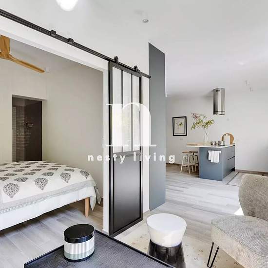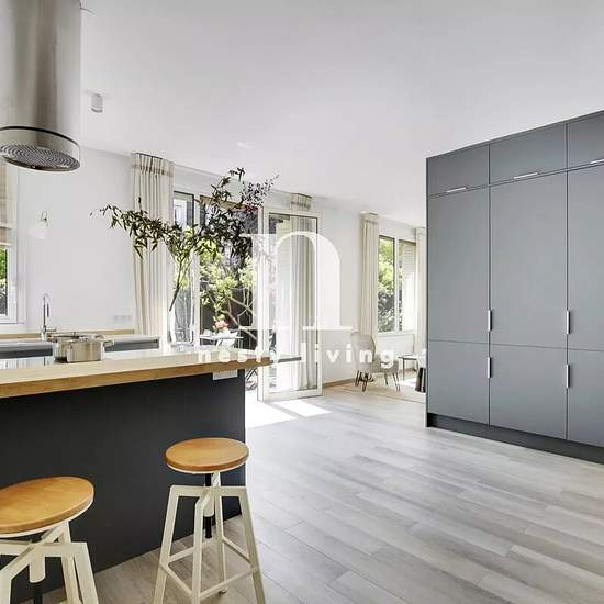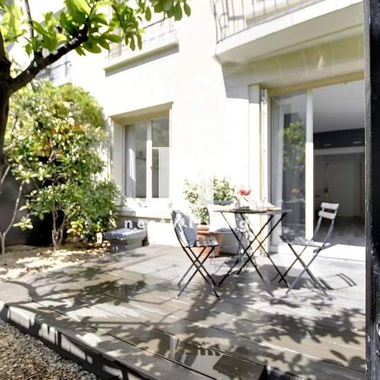 En exclusivité: Nous vous proposons ce magnifique Rez de Jardin situé dans le quartier de Bagatelle. Refait à neuf, ce bien dispose d'une localisation idéale, face au lac de Bagatelle. Agencé, à la manière d'une suite d'hôtel, il se compose d'une entrée donnant sur le séjour, une cuisine américaine ainsi qu'un salon de lecture; le tout donnant sur un jardin privatif de 25m2 exposé plein sud, avec une entrée totalement privative sur rue. Coté nuit, une très jolie chambre avec sa salle de bain et son toilette séparé. La buanderie équipée Miele...