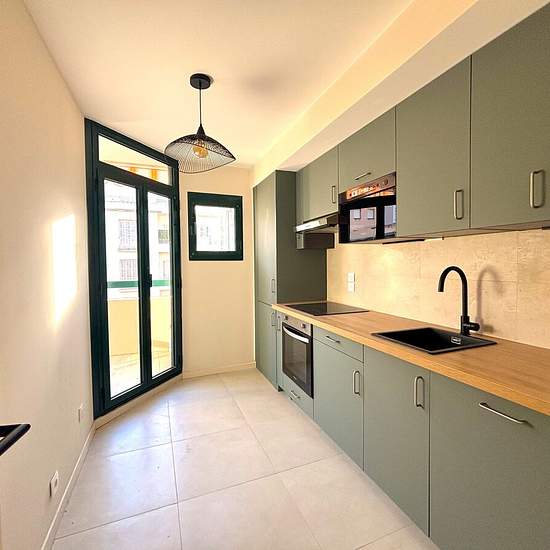 In the Quartier des Fleurs, a very beautiful apartment fully renovated, sunny and quiet, available for long-term unfurnished rental. The apartment, in a modern building on a high floor, offers an ideal layout and comprises: a practical entrance hall with a large closet, a spacious and welcoming living room opening directly onto a south-facing terrace. The separate, fully equipped kitchen can accommodate a dining area. On the sleeping side, you will find a quiet bedroom, a shower room, a separate WC, and a laundry room completes the whole. Th...