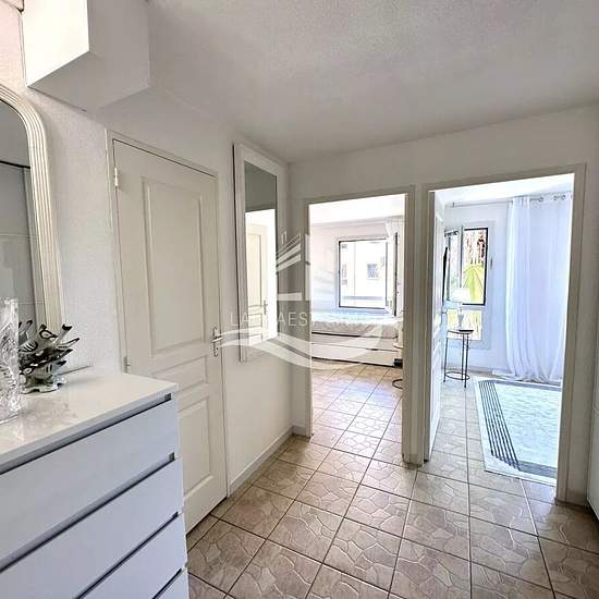 Appartement situé au cinquième étage composé d’une grande entrée, placard avec porte coulissante, séjour avec cuisine américaine équipée, chambre, lit, TV, salle de douche italienne, wc Très lumineux Idéal pour investissement.