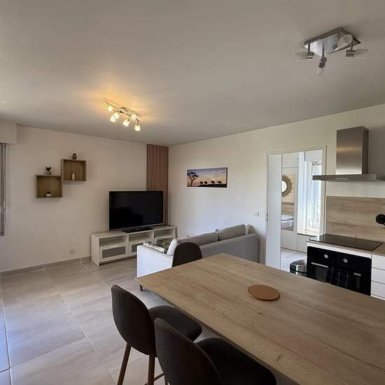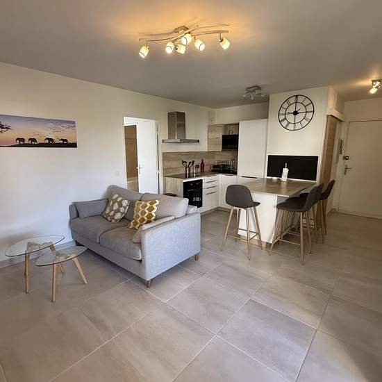 À la location dans la résidence le " Plein Ciel " avec piscine, gardien et parking collectif. Cet appartement 2 pièces de 37 m² loué meublé et composé : d'un salon/séjour avec cuisine ouverte et grande terrasse, une chambre, une salle de bain et WC indépendant. Loyer 1200€ par mois charge comprise (eau froide, entretient de la copro) Caution : 2 mois hors charges Honoraires : 481€ Tout dossier sera étudié avant visite. Les informations sur les risques auxquels ce bien sont exposé sont disponibles sur le site Géorisques : Afficher le téléphone
