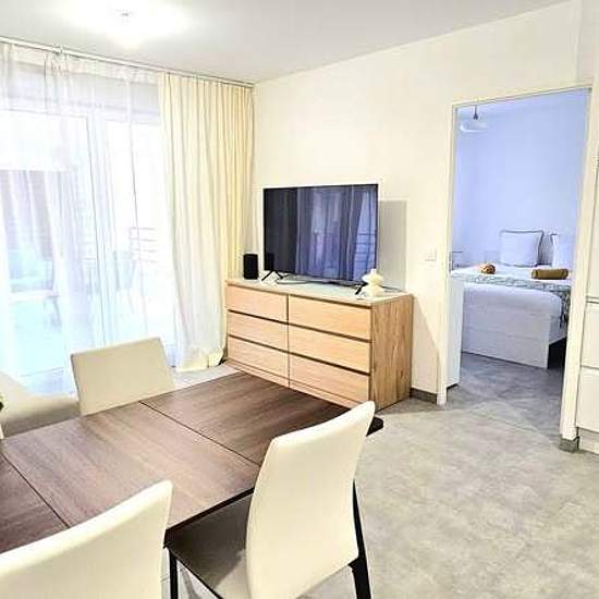 Bienvenue dans cet appartement T2 absolument neuf de 40 m², idéalement situé à Nice, dans un quartier calme et paisible, sans vis-à-vis, tout en restant proche du centre-ville. Vous profiterez d’une grande terrasse de 12 m², parfaite pour les petits-déjeuners au soleil, les repas en extérieur ou les moments de détente après une journée à la plage ou en ville. L’appartement est entièrement neuf et moderne, décoré avec soin et pensé pour votre confort : Séjour lumineux avec canapé-lit convertible 2 places Deux télévisions (salon et chambre) Cu...