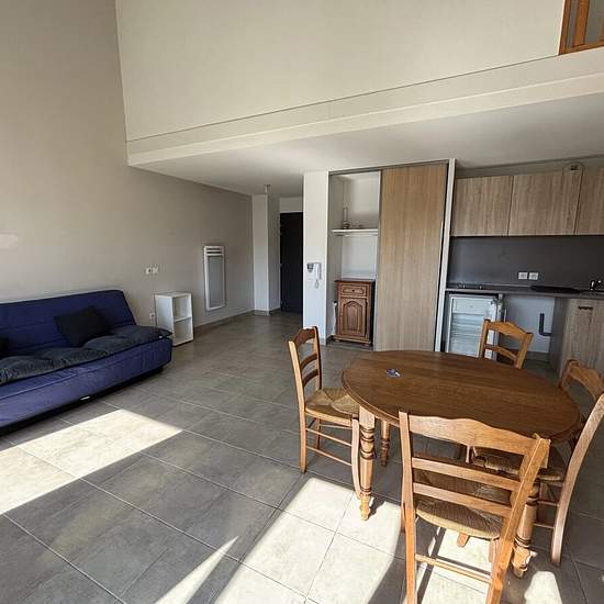 L'agence FG Immobilier vous propose ce bel appartement en duplex loué meublé de 56 m2, situé au 3ᵉ étage d'une résidence récente avec ascenseur. Ce logement se compose d’un séjour lumineux avec une cuisine entièrement équipée, ainsi que d’une grande chambre de 17 m² avec dressing aménagé. Vous y trouverez également une salle d’eau avec WC. Profitez d’une agréable terrasse de 6 m² offrant une vue dégagée. L’appartement est équipé d’une climatisation réversible dans chaque pièce pour un confort optimal toute l’année. Le plus : une place de par...