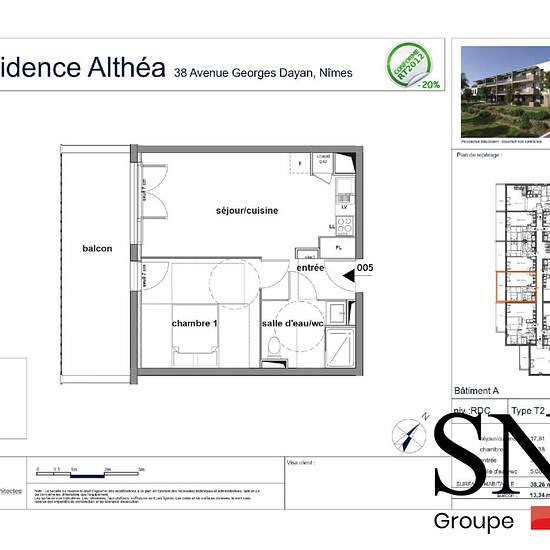 QUIETIS // RESIDENCE ALTHEA // DISPOSITIF PINEL DISPONIBLE LE 16/11/2025 Contacter MR BERTHON David au 06x16x10x54x08 ou par mail EMAIL pour visiter cet appartement T2 en RDC de 38.26m² avec un balcon de 13.34m². Une entrée, un séjour donnant sur une cuisine équipée d'un plan de travail, évier, plaque vitro céramique 4 feux, hotte, meubles bas et haut. Une chambre, une salle d'eau avec WC. Un parking extérieur. Honoraires de 497,38 € TTC à la charge du locataire comprenant 114,78 € TTC pour l'état des lieux. Loyer de base 520.00 €/mois. Prov...