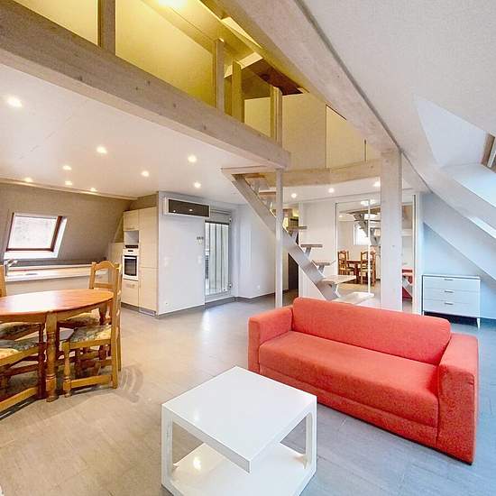 OBERNAI - Beau 2 pièces en duplex de 38m² entièrement meublé - vue dégagée sur Obernai Appartement 2 pièces en duplex de 38m² comprenant : un séjour avec un accès à un balcon, une cuisine aménagée et équipée (four, plaque, hotte, lave-vaisselle, frigidaire, machine à laver), et un wc séparé. A l'étage, la chambre et la salle d'eau. En annexe : une cave. Chauffage individuel électrique - DPE : F Loyer HC : 600 €+ Charges : 60 € (chauffage et eau chaude inclus) Frais d'agence TTC : 421 € (Etat des lieux inclus) Nous contacter : BH IMMOBILIER :...
