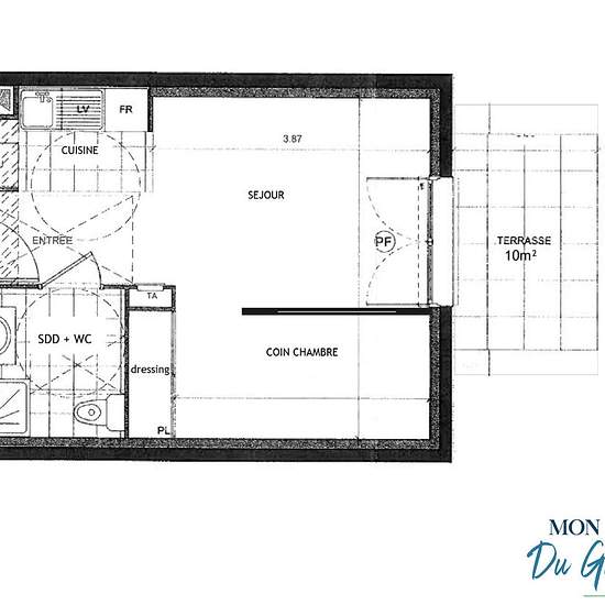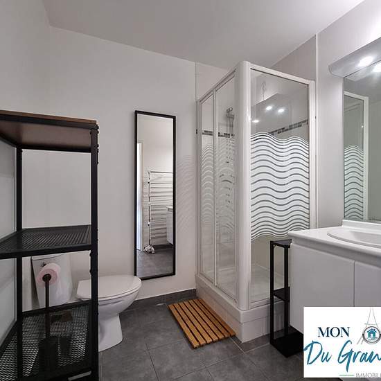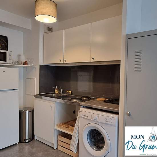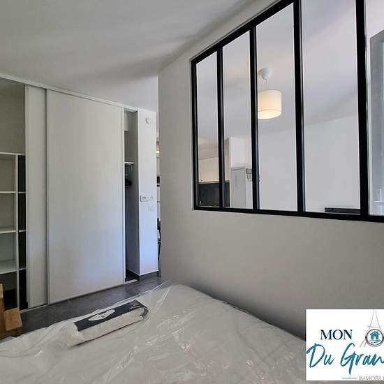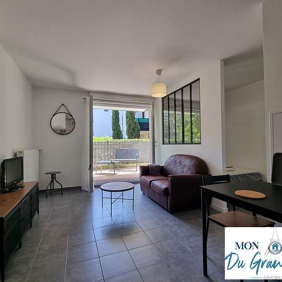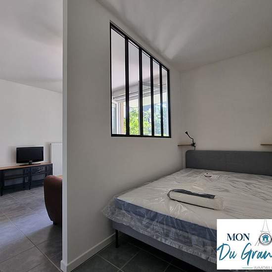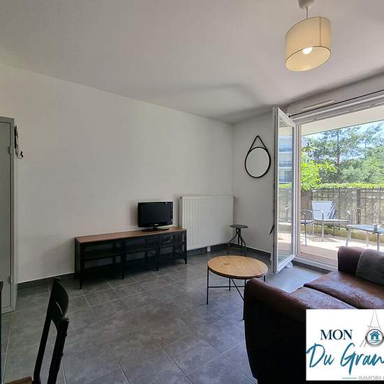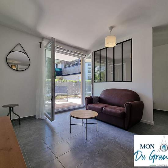 Located right on the Plateau de Saclay (Grand-Paris South), superb small furnished 2-room garden-level apartment with its terrace, in excellent condition, comprising: fitted and equipped kitchen and living room (19 m²), both opening onto a beautiful 10 m² southeast-facing terrace; bedroom area (6 m²) with large fitted wardrobe; shower room with toilet. Very well laid out and optimized apartment, with plenty of storage. Bike storage. All furniture and appliances shown in the photos will be present in the rental (everything is new). The apartm...