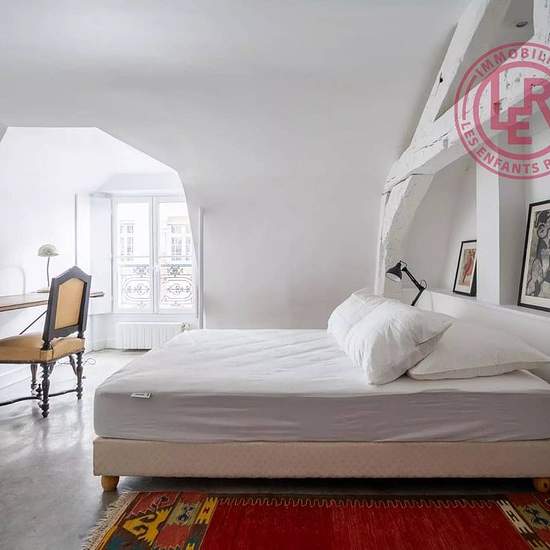 Au cour du Haut-Marais, face à l'Hotel salé (Musée Picasso), aux 3ème et 4ème étages d'une petite copropriété, un bel appartement de deux pièces en duplex bénéficiant de beaux matériaux. Il se compose d'une pièce avec deux fenêtres en exposition Est et une cuisine séparée équipée. Un escalier permet d'accéder au 4ème étage sur lequel se trouve une belle suite avec dressing, salle de bains et wc.