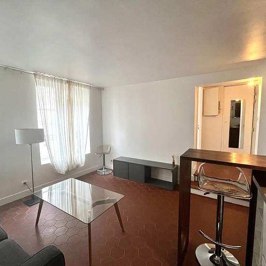 Civil lease only (secondary residence). On Rue de Turenne, on the 1st floor of a lovely period building with a concierge, you'll be charmed from the moment you enter by the quiet of this 32.64 m², dual-aspect apartment. It comprises a small entrance with a built-in cupboard, a spacious living room with an open fitted kitchen, a bedroom with a fitted dressing area, a shower room with a window and a separate toilet. Parquet flooring. Double glazing. Coded entry and intercom. 1-year renewable lease. Available immediately.